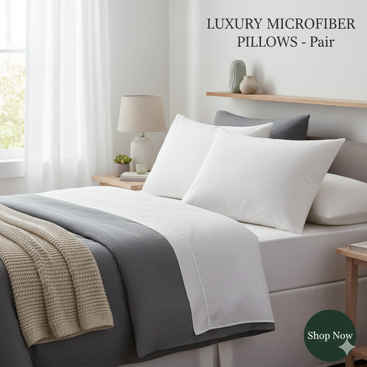 Hotel Quality Microfibre Pillow Pair - Luxury Super Soft Bed Pillows with Piped Edges (UK Standard Size)